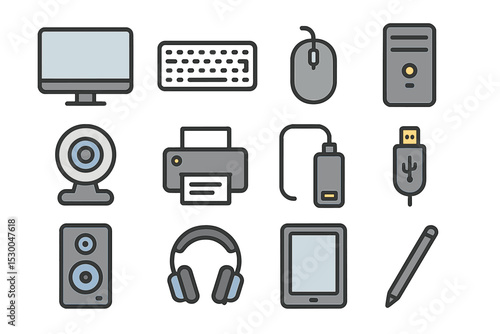 computer, accessory, device, background, illustration, monitor, keyboard, mouse, webcam, printer, usb, speaker, earphones, tablet, stylus, technology, equipment, digital, electronic, icon, design, interface, contraption, hardware, cable, plug, tool, connectivity, communication, screen, network, input, output