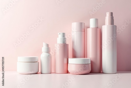 Various cosmetic containers on white backdrop, professional, cosmetic set, new product