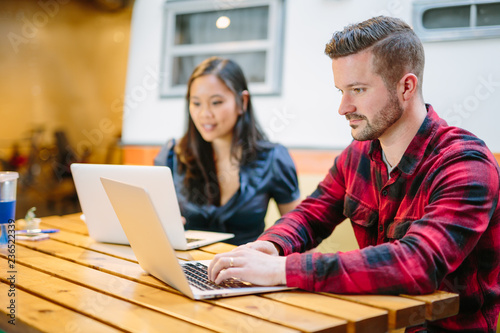 modern, collaboration, workplace, technology, software, office, laptop, interactive, hip, engineer, developer, culture, computer, coding, business, caucasian, white, woman, female, lady, person, people, adult, adult, 30s, grown-up, man, male