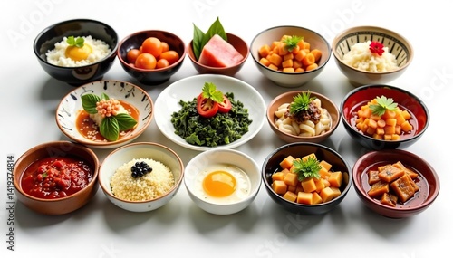 delicious, food, side dish, menu, chopstick, vegetarian, vegan, tofu, natural, japanese, eatery, minimal, miso soup, fresh, detail, vegetable, colours, studio shot, pickle, bowl, macro, food photography, meal, tempura, contrast, garnish, texture, healthy, asian, clean, simple, organic, white background, cookery