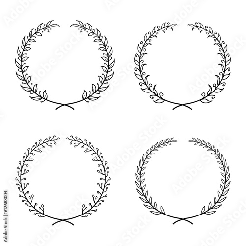 various round laurel wreath frames collection with hand drawn style