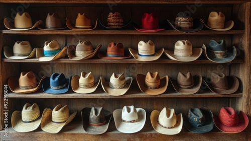 ai, western, fashion, cowboy, hat, collection, rustic, decor, wooden, shelf, style, accessory, country, wear, headgear, display, unique, design, tour tourism, authentic, vintage, stylish, fabric, craftsmanship, blue, hat, brown, leather, straw, colourful, traditional, artisan, culture, charme, shop, casual attire, regional, attire, heritage, home, rural, tradition, old, west, lifestyle, equestrian, souvenir, local