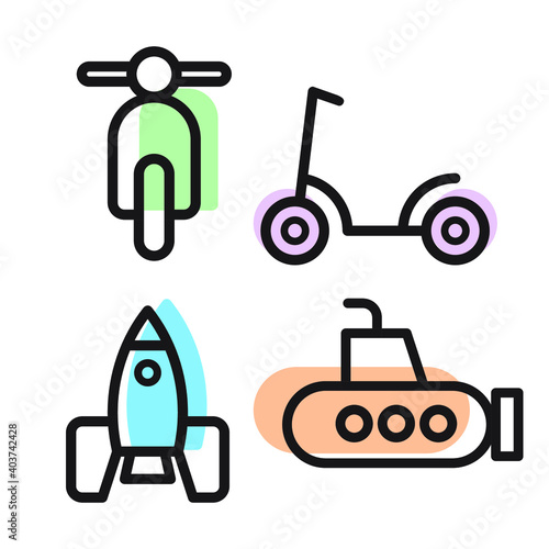 Various transportation vehicles icons and symbols. Eps10 vector illustration.