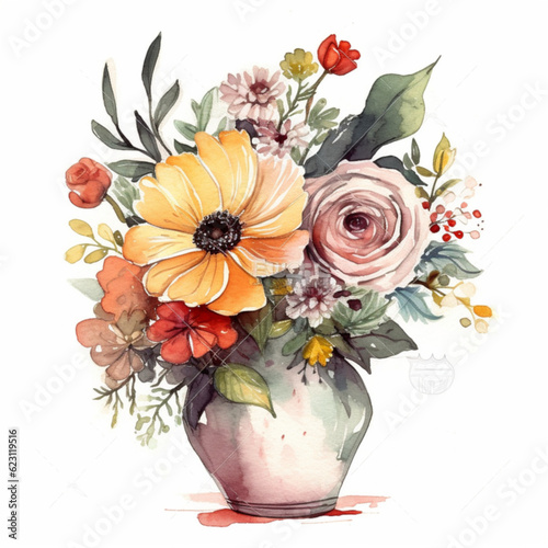 Vase of flowers / bouquet with white background
