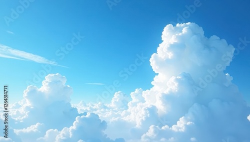 Vast expanse of azure, billowing white clouds create a dreamy summer scene , peaceful, day, high-definition