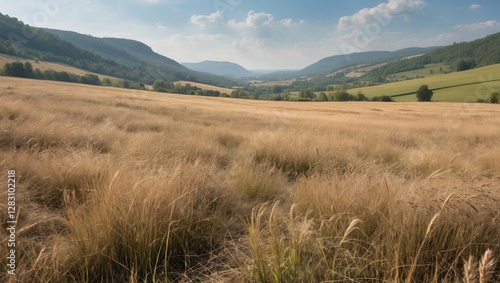 landscape, gold, hill, rolling, blue, sky, cloud, nature, outdoors, scenery, tranquil, peaceful, summer, vibrant, wide, open, field, background, texture, flora, rural, environment, sunshine, horizon, panoramic, scenic, beauty, daylight, agriculture, untouched, expansive, growth, idylli, ecosystem, biodiversity, natural, calm, pastoral, serene, sunlit, wildlife, travel, exploration, photo, stock
