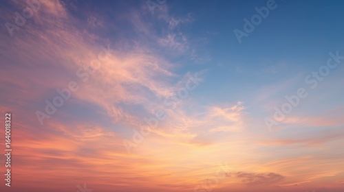 Vast tranquil sunrise sky with soft pastel clouds and golden morning glow