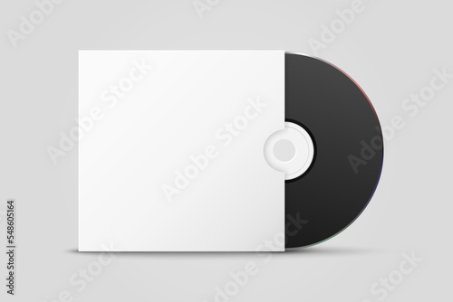 Vector 3d Realistic Black CD, DVD with Paper Cover, Envelope, Case Isolated. CD Box, Packaging Design Template for Mockup. Compact Disk Icon, Front View
