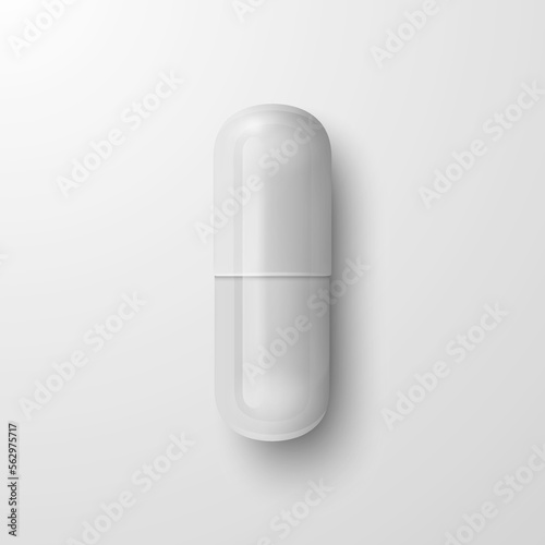 Vector 3d Realistic White Pharmaceutical Medical Pill, Capsule, Tablet on White Background. Front View. Copy Space. Medicine, Health Concept