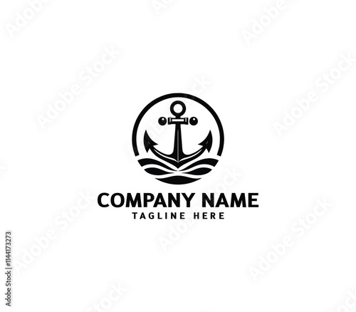 Vector anchor logo design. Marine retro emblems logo with anchor. Monochrome sea anchor illustration