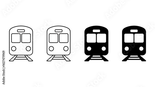 Vector art of Train Icons: Outline, Filled, Black and White, Simple Subway Transportation Graphics