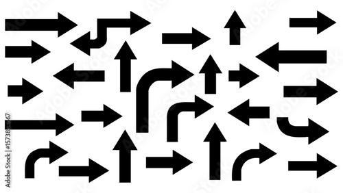 arrow, direction, way, choice, path, forward, backward, up, down, left, right, curve, straight, many, group, set, collection, signs, symbol, navigation, movement, traffic, transport, business, strategy, decision, option, graphic, design, abstract, black, white, contrast, communication, information, guidance, pointer, next, previous, change, progress, development, growth, success, challenge, opportunity, complexity, simplicity, chaos