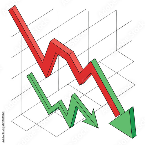 Vector art of a visual representation of downward trends with red and green arrows indicating decline isolated on white background