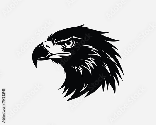 eagle, head, bird, animal, predator, wildlife, nature, feather, beak, eye, portrait, black, drawing, graphic, symbol, design, mascot, strength, power, freedom, america, us, bald, american, patriotic, national, flag, crest, heraldic, coat, arm, emblem, badge, signs, logotype, clip art, silhouette, tattoo, art, artwork