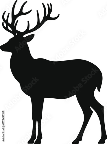 cervid, stag, antler, silhouette, animal, wildlife, nature, mammal, isolated, white, background, graphic, design, icon, symbol, art, illustration, full, body, standing, majestic, regal, forest, wilderness, hunting, buck, cervidae, male, creature, outline, shape, black