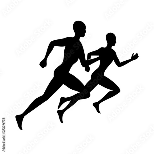 Vector art of silhouette of two runners isolated on white background, symbolizing teamwork, competition, and the pursuit of fitness and speed in a race