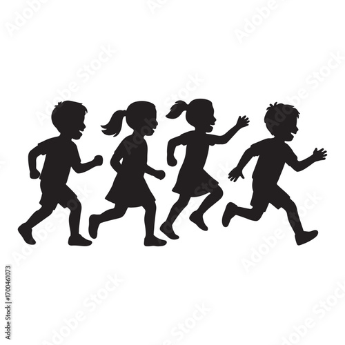 silhouette, children, running, play, children, children, youth, young, group, people, run, motion, activity, exercise, fun, joy, happiness, black, shape, figure, outline, graphic, design, symbol, signs, art, drawing, clip art, artwork, human, male, female, boy, girl, movement, speed, energy, active, together, leisure