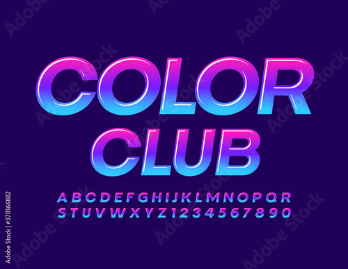 Vector artistic sign Color Club. Glossy creative Font. bright Gradient Alphabet Letters and Numbers set