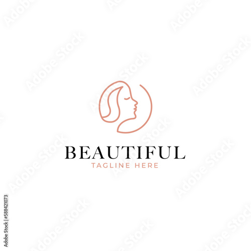 Vector beauty logo with woman head inside circle design concept illustration idea