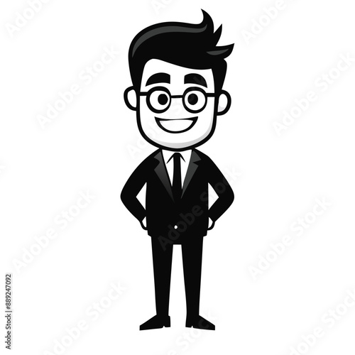 businessman, cartoon, business, vector, character, illustration, people, office, suit, smile, person, three-dimensional, boy, manager, attaching, symbol, icon, standing, work, men at work, success, job, man, boss, thinking