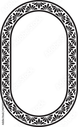 Vector black monochrome stencil oval classic byzantine ornament. Circle, ring, border, Ancient Greece, Eastern Roman Empire frame. Decoration of the Russian Orthodox Church