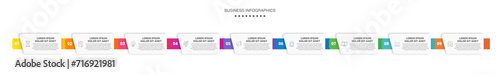 Vector business infographics design template. Timeline with 9 options, steps, labels, marketing icons. Illustration used for workflow layout, diagram, presentations, flow chart, banner, info graph.