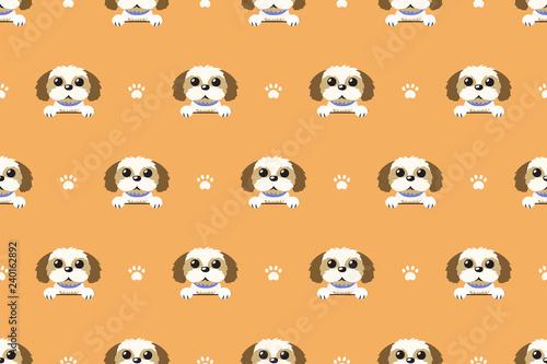 Vector cartoon character shih tzu dog seamless pattern for design.