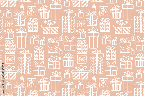 background, christmas, gift, box, bow, christmas, beige, white, vector, merry, gift box, bowknot, christmas, ornament, holiday, new, hand, drawn, decoration, illustration, december, winter, season, year, celebration, symbol, cute, art