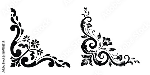 floral, corner, ornament, folk art, flower, border, swirl, scroll, elegant, invitation, card, wedding, graphic, element, set, nature, leaf, plant, abstract, silhouette, hand-drawn, ethnic, traditional, pattern, beautiful, classic, frame, certificate, greeting, botanical, monochrome, isolated, collection, art, filigree, flourish, decor, style, motif, tattoo, print, scrapbook, doodle