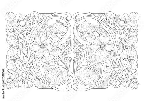Vector coloring page with flowers and intricate patterns for relaxation and creativity