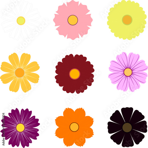 Vector Cosmos Flower Set – 9 Color Variations for Creative Projects