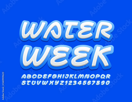 Vector creative banner Water Week with handwritten Font. Blue and White Alphabet Letters and Numbers