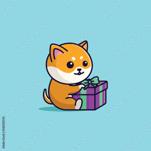 Vector cute cartoon dog with gift box free simple illustration