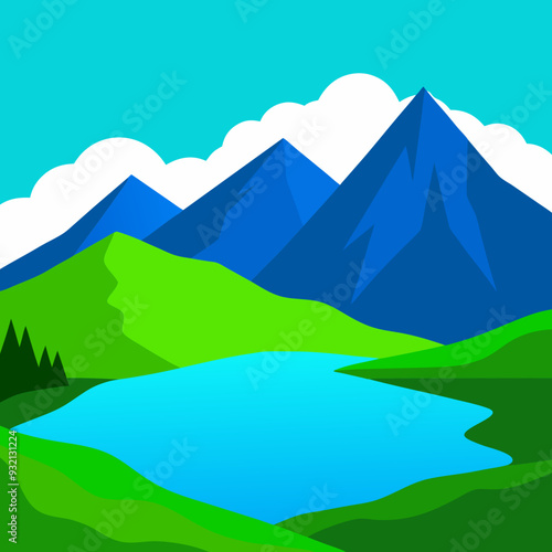 Vector Design Serene Mountain Lake with Turquoise Waters