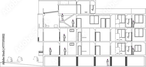 vector design sketch illustration, architectural engineering drawing, detailed structural section, Luxury Apartment Building Project