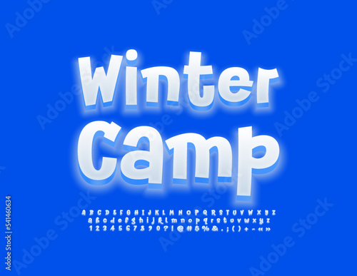 Vector funky emblem Winter port. White glowing Font. Artistic style Alphabet Letters, Numbers and Symbols set