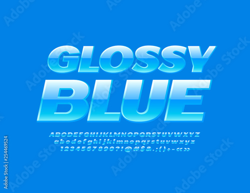 Vector Glossy Blue Font. Stylish Alphabet Letters, Numbers and Symbols.