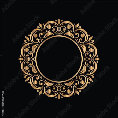Vector golden frame. Elegant element for design in Eastern style, place for text. Floral golden border. Lace illustration for invitations and greeting cards.