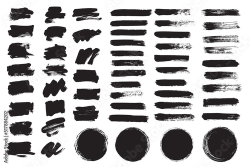 Vector grunge brush collection. Round shape, text box. Black paint brush stroke.