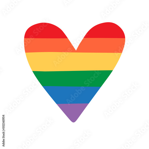 Vector hand drawn doodle sketch lgbt rainbow flag heart isolated on white background