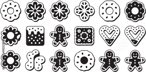 Vector icon set of assorted cookies and biscuits sweet snack illustrations, dessert symbols, bakery treats, outline graphics