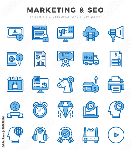 Vector icons set of Marketing & SEO. Two Color style Icons.
