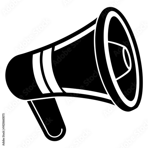 Vector illustration features a red megaphone icon isolated on white, symbolizing loud public announcements