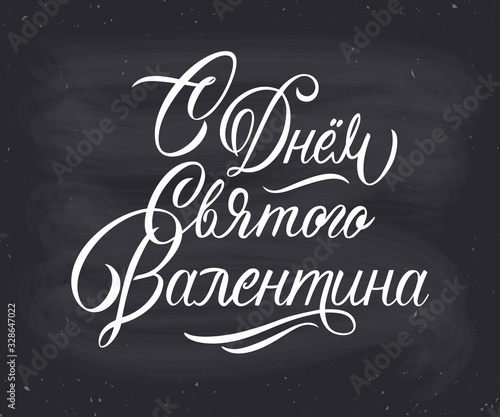 Vector illustration. Happy Valentines Day typography vector design for greeting cards and poster. Russian translation: Valentines Day. Valentines Day text with gift box, paper Valentines.
