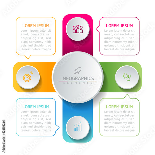 Vector illustration infographics design template, business information, presentation chart, with 4 options or steps.