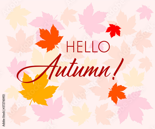 Vector illustration: Lettering composition of Hello Autumn with leaves.