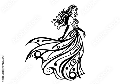 woman, dress, bride, beauty, fashion, vector, wedding, illustration, princess, hair, art, silhouette, people, drawing, flower, person, cartoon, vignetting, children, dance, elegance, fairy, design, model, love