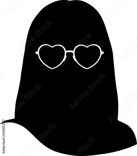 Vector illustration of a girl wearing heart shaped glasses, silhouette on white background