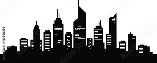 vector, illustration, city landscape, skyline, city, urban, building, skyscraper, architecture, modern, black-and-white, minimalist, downtown, silhouette, flat, design, metropolis, city landscape, city life, town, street, business, financial district, office, apartment, tower, construction, travel, tour tourism, destination, future, technology, development, progress, corporate, commercial, graphic, background, banner, template, minimal, abstract, geometric, tower block, residential, real estate, urban scene