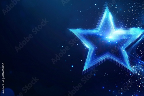 Vector illustration of a shining blue star with a light effect on a dark background, featuring glowing lines and bokeh lights. This vector illustration is suitable for a web banner design template.